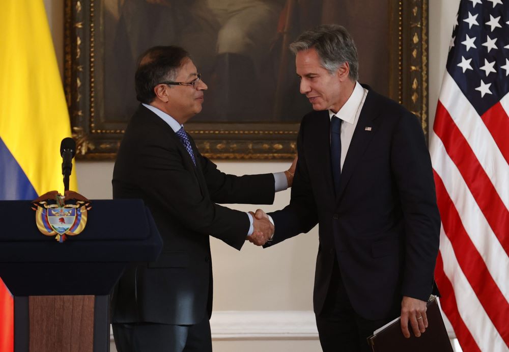 Ο αμερικανός υπουργός Εξωτερικών Άντονι Μπλίνκεν, που έφθασε χθες στην Μπογοτά στο πλαίσιο περιοδείας του στη Λατινική Αμερική, είχε συνομιλίες με τον πρόεδρο Πέτρο στο παλάτι Κάσα Ναρίνιο κι εξέφρασε την υποστήριξή του στις προσπάθειες της Κολομβίας να αντιμετωπίσει τη διακίνηση ναρκωτικών.