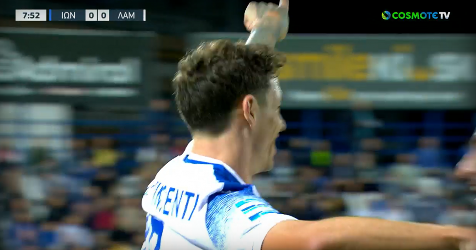 Το προβάδισμα κόντρα στον Ιωνικό έδωσε στην Λαμία ο Τόμας Ντε Βισέντι μόλις στο 8′ της αναμέτρησης. Ο Ασκόφσκι μετά από ωραία του κούρσα του βρήκε τον Αργεντίνο στον κενό χώρο, εκείνος μπήκε στα καρέ του Χουτεσιώτη και πλάσαρε εύστοχα.