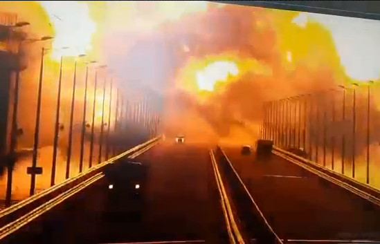 Όπως ανακοίνωσε νωρίτερα η ρωσική αντιτρομοκρατική επιτροπή, η πυρκαγιά στη γέφυρα που συνδέει τη χερσόνησο της Κριμαίας με το δίκτυο μεταφορών και συγκοινωνιών της Ρωσίας οφειλόταν στην ανατίναξη οχήματος παγιδευμένου με εκρηκτικά, προσθέτοντας πως το τμήμα της γέφυρας που χρησιμοποιείται από τα αυτοκίνητα έχει υποστεί ζημιά.