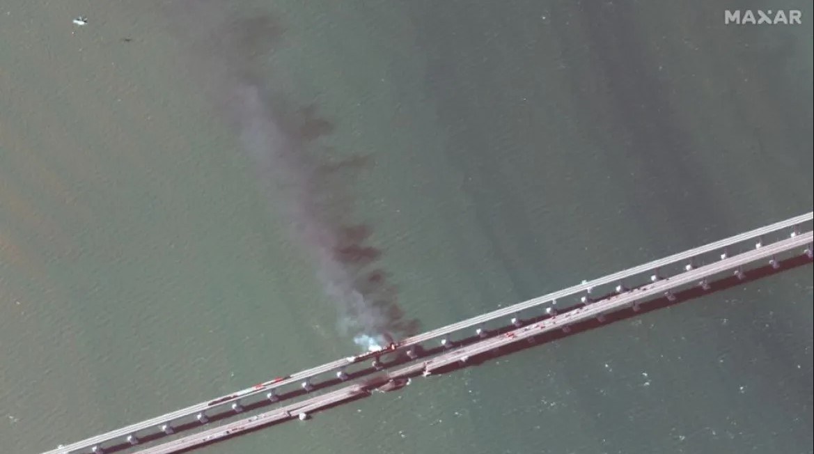 Φωτογραφίες από δορυφόρο έδωσε στη δημοσιότητα η Maxar Technologies μετά την έκρηξη που σημειώθηκε στη γέφυρα της Κριμαίας. Θυμίζουμε ότι ακόμα δεν έχει ξεκαθαρίσει τι ακριβώς συνέβη με τον Βλαντίμιρ Πούτιν να έχει διατάξει έρευνα.
