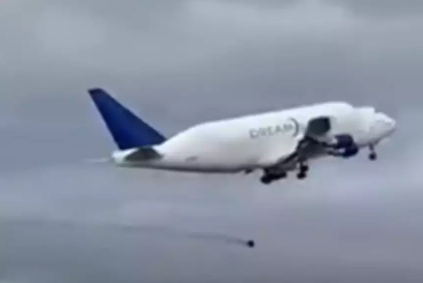 Ένα γιγαντιαίο αεροσκάφος Boeing 747 Dreamlifter, έχασε έναν τροχό αμέσως μετά την απογείωσή του, με το βίντεο που κάνει το γύρο του διαδικτύου να αποτυπώνει τη στιγμή.