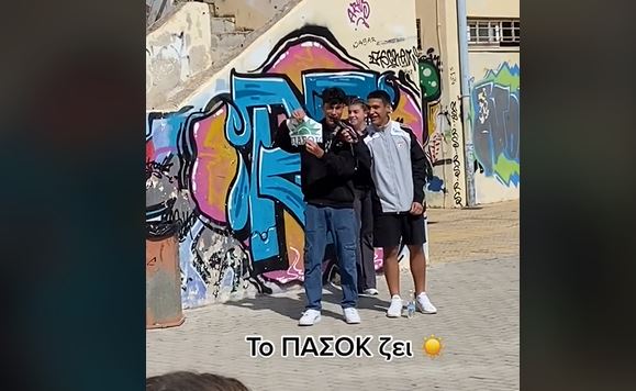 Εκεί ένας μαθητής αποφάσισε να μιλήσει στο μικρόφωνο κουνώντας μια σημαία του ΠΑΣΟΚ και λέγοντας πως «το ΠΑΣΟΚ ζει, αν με ψηφίσετε θα πάμε εκδρομές και θα κάνουμε εκδηλώσεις».