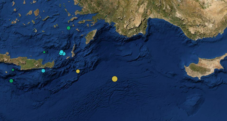 Σεισμός 4,1 Ρίχτερ σημειώθηκε μετά τα μεσάνυχτα σήμερα Πέμπτη στον υποθαλάσσιο χώρο της Ανατολικής Μεσογείου, σε απόσταση 178 χιλιομέτρων νότια-νοτιοδυτικά του Καστελλορίζου.