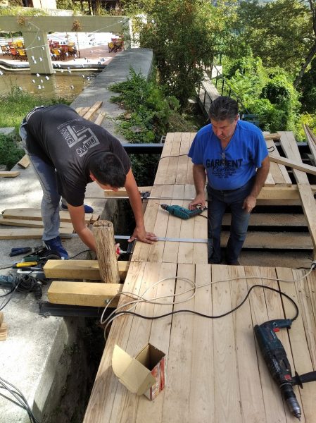 Συνεργείο από εργαζόμενους της Δημοτικής Κοινωφελούς Επιχείρησης του Δήμου Έδεσσας (ΔΗΚΕΔΕ) πραγματοποίησε εργασίες αποκατάστασης της μεγάλης ρόδας, ενώ είχαν προηγηθεί αποκαταστάσεις φθορών στη στέγη του νερόμυλου.