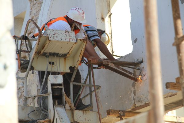 Ήδη περιμετρικά του κτιρίου έχει ξεκινήσει η διαδικασία ενίσχυσης της στατικότητας και ταυτόχρονα γίνονται και άλλες εργασίες, όπως η σταδιακή προετοιμασία της οροφής, κ.α.. Καθημερινά μηχανικοί και επιβλέποντες βρίσκονται εδώ, συνεργάζονται με τον ανάδοχο και με τα σημερινά δεδομένα έχουμε την πεποίθηση ότι όλα θα κινηθούν ακριβώς όπως είχαν σχεδιαστεί αρχικά», τόνισε στις δηλώσεις του ο κ. Σημανδηράκης.