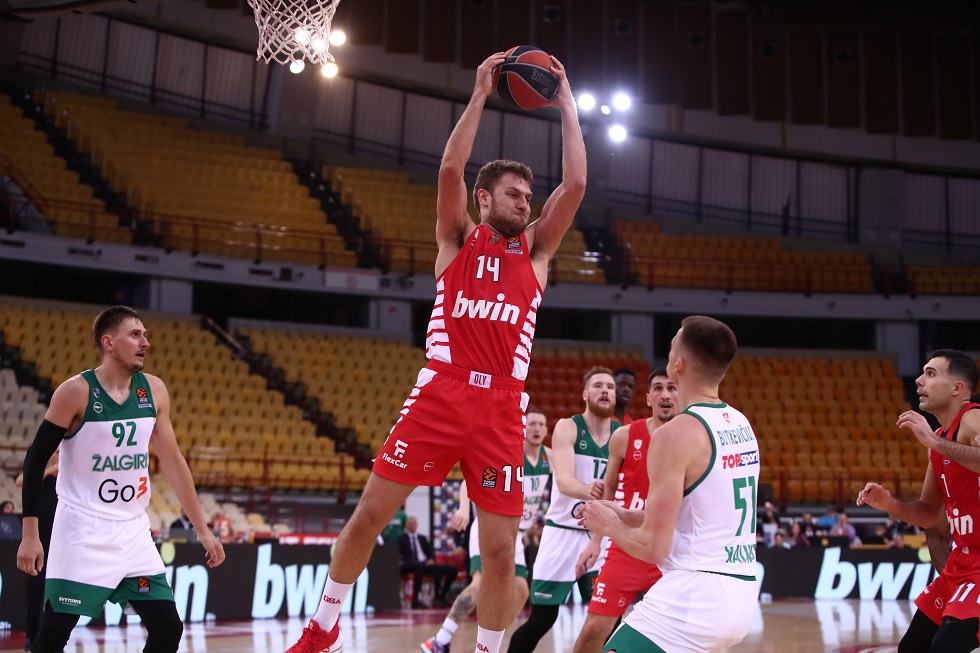 Ο Ολυμπιακός δεν πτοήθηκε ούτε από την απουσία των οπαδών του ούτε από αυτή του αρχηγού του και έκανε το 2/2 στην Euroleague επικρατώντας της Ζαλγκίρις με 90-80. Απόλυτος πρωταγωνιστής για την ομάδα του Γιώργου Μπαρτζώκα, ήταν ο Σάσα Βεζένκοφ, ο οποίος τελείωσε το παιχνίδι με ένα τρομερό double – double (23 πόντοι, 14 ριμπάουντ, 37 ranking).