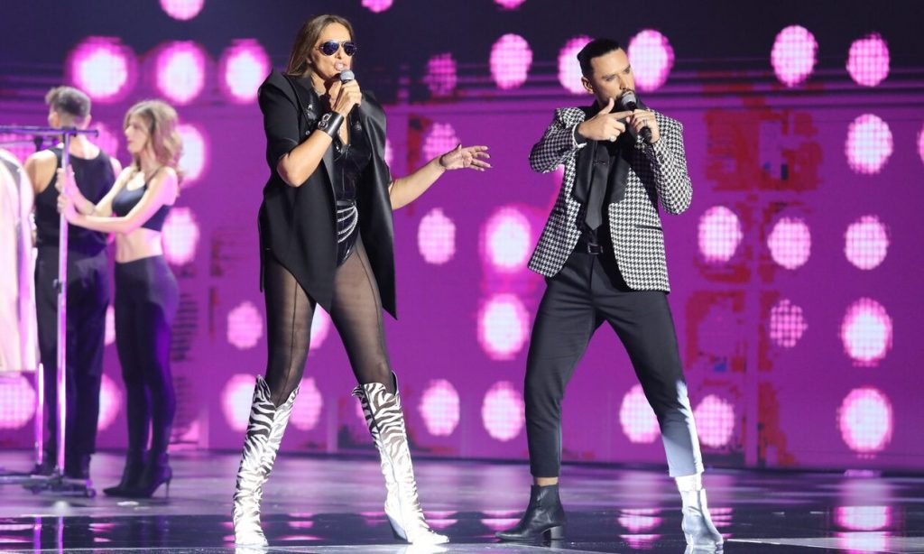 Το ζευγάρι της Βίκυ Κουλιανού με τον Άρη Πετράκη ήταν αυτό που ακολούθησε με το άλλοτε super model να τραγουδάει το ομώνυμο τραγούδι και να κλέβει την παράσταση.