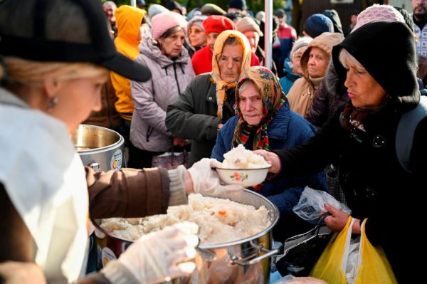Κάτοικοι του Κοπιάνσκ στο Χάρκοβο περιμένουν στην ουρά για συσίτιο (Reuters)