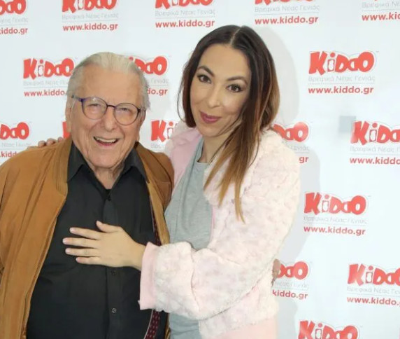 H Αλίκη Κατσαβού με τον Φοίβο Βουτσά χαμογελαστή σε θεατρική παράσταση