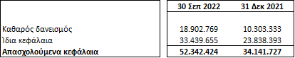 Όσο αφορά μόνο το 3ο τρίμηνο, οι πωλήσεις του Ομίλου παρουσίασαν αύξηση κατά 45,7% σε σύγκριση με το αντίστοιχο τρίμηνο του 2021 και ανήλθαν στα 44,7 εκ. ευρώ, τα κέρδη προ φόρων, τόκων & αποσβέσεων (Ebitda) ανήλθαν στα 14,6 εκ. ευρώ αυξημένα κατά 55,1% ενώ τα αποτελέσματα προ φόρων ανήλθαν στα 10,3 εκ. ευρώ αυξημένα κατά 41,3%.
