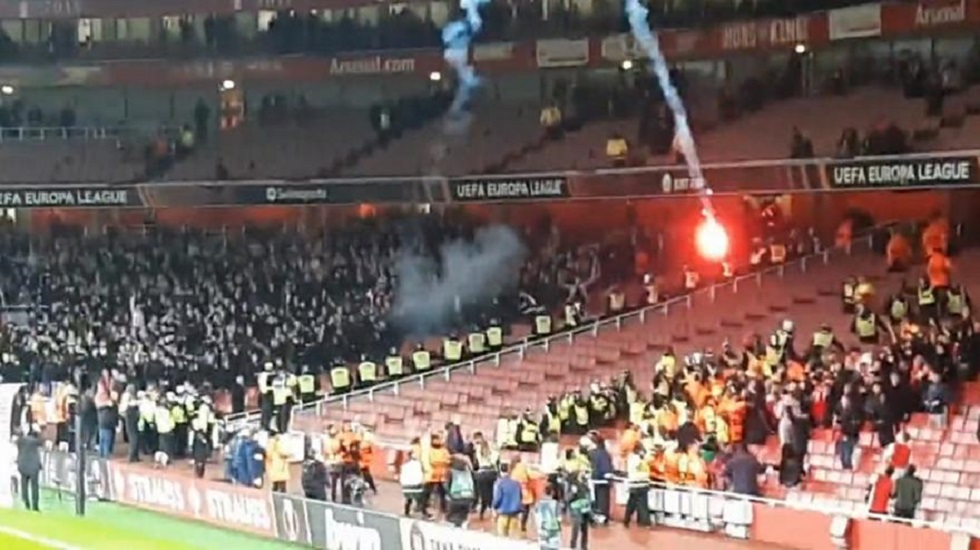 Συγκεκριμένα, οι οπαδοί της ολλανδικής ομάδας που ταξίδεψαν ως το Λονδίνο, πέταξαν ορισμένα αντικείμενα και βεγγαλικά σε ορισμένους της Άρσεναλ που είχαν παραμείνει στις κερκίδες.