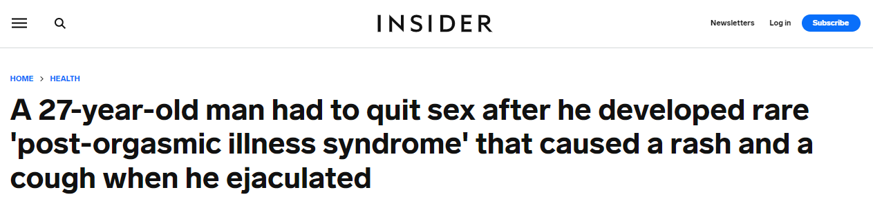 Πάντως δεν είναι η μοναδική περίπτωση, καθώς έχουν αποκαλυφθεί ακόμα 60 περιπτώσεις ανθρώπων που έχουν προσβληθεί από αυτή τη σπάνια πάθηση γνωστή ως Σύνδρομο Μετα-Οργασμικής Ασθένειας (POIS).