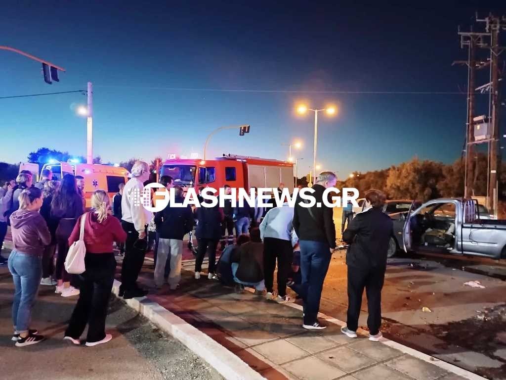 Στο σημείο του ατυχήματος μετέβη και η Πυροσβεστική καθώς στον δρόμο είχαν διασκορπιστεί συντρίμμια και λάδια.