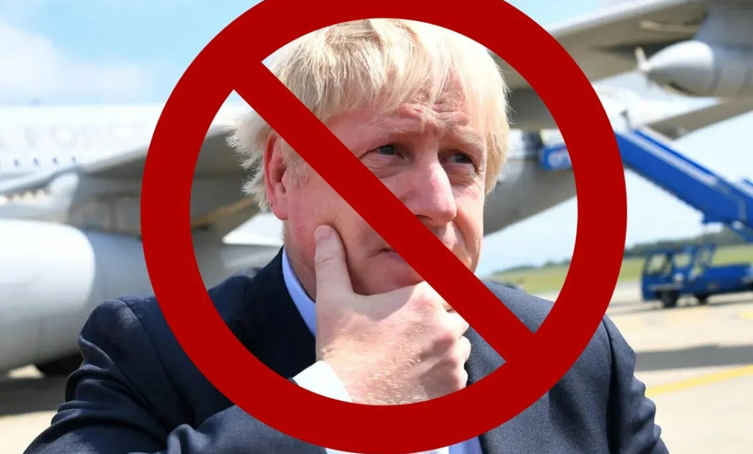 «Για να είμαστε ξεκάθαροι: δεν βοηθάμε τον Μπόρις να επιστρέψει σήμερα», έγραψε σε tweet η Ryanair, συνοδεύοντας το με μια φωτογραφία του πρώην Βρετανού πρωθυπουργού, με ένα απαγορευτικό να καλύπτει το πρόσωπό του.