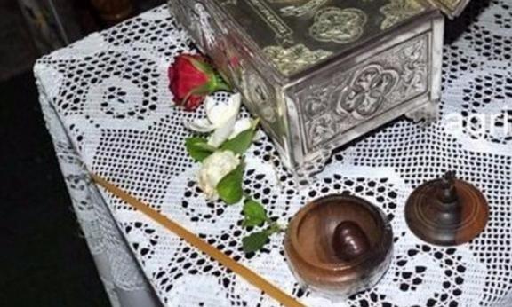Πλήθος πιστών προσκύνησαν την παντόφλα του Αγίου που βρισκόταν σε ειδική γυάλινη βιτρίνα και φυσικά… άφησαν και τον οβολό τους.