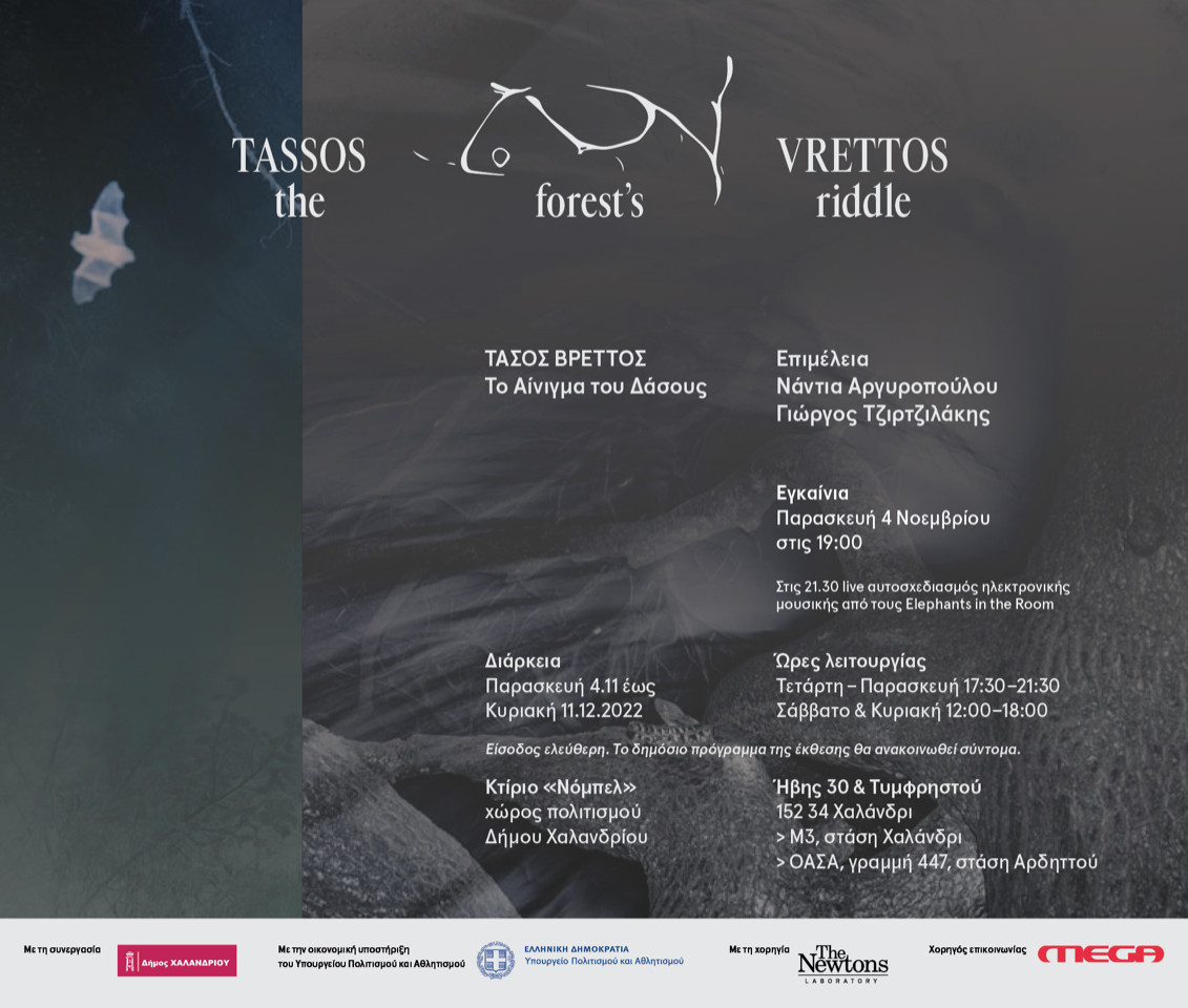 Aδημοσίευτο φωτογραφικό εστιάζει στις πρόσφατα καμένες δασικές εκτάσεις της Αττικής (2021) σε συνύπαρξη με εικόνες του ζωντανού δάσους και σε άλλα μέρη της χώρας. O Τάσος Βρεττός παρουσιάζει από τις 4 Νοεμβρίου έως τις 11 Δεκεμβρίου μια διαφορετική έκθεση / δράση.