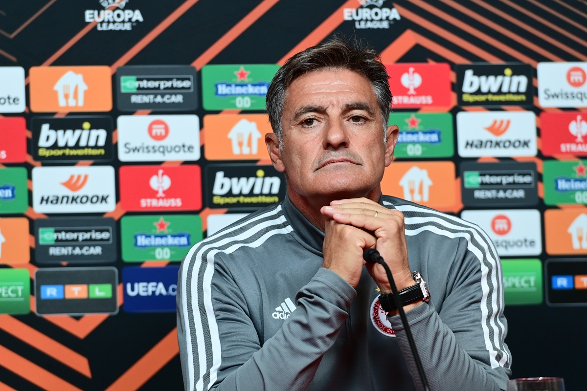 Για το εάν ο Ολυμπιακός θα προσπαθήσει να αιφνιδιάσει την Φράιμπουργκ ή εάν θα προσπαθήσει να μείνει στο ματς όσο περισσότερο μπορεί και να χτυπήσει στο τέλος: «Οποιος με γνωρίζει σαν προπονητή και όποιος έχει παρακολουθήσει τους αγώνες μου θα ξέρει ότι είμαι ένας προπονητής που παίζω πάντα για τη νίκη. Αυτό θα προσπαθήσουμε να κάνουμε και αύριο. Η Φράιμπουργκ είναι ένας πολύ δύσκολος αντίπαλος, αλλά στο ποδόσφαιρο υπάρχουν πολλές στιγμές που οι στατιστικές πάνε… περίπατο. Είμαστε πολύ πιο σίγουροι, πολύ πιο ενωμένοι από το πρώτο παιχνίδι. Πιο βελτιωμένοι σε πολλούς τομείς. Δεν θέλω να πω ότι γι’ αυτό ευθύνεται ο προηγούμενος προπονητής. Η ομάδα, όμως, παίζει καλύτερα, όπως τόνισε και ο Αλέξανδρος. Με μεγαλύτερη σιγουριά και με καλύτερη επικοινωνία. Εχουμε και εμείς τα όπλα μας, τα οποία θα προσπαθήσουμε να χρησιμοποιήσουμε αύριο».
