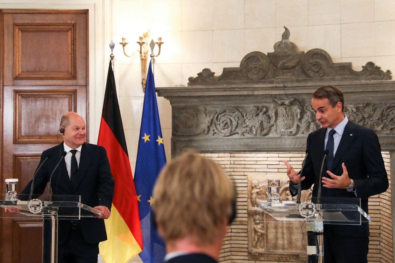 Κοινή συνέντευξη Τύπου έδωσαν Κυριάκος Μητσοτάκης και Όλαφ Σολτς μετά τη συνάντηση που είχαν στο Μέγαρο Μαξίμου. Οι δύο ηγέτες αναφέρθηκαν στην ενεργειακή κρίση, στα ελληνοτουρκικά, στον πόλεμο στην Ουκρανία, ενώ μίλησαν και για τις ελληνο-γερμανικές σχέσεις.