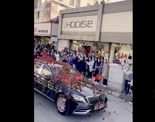 Τουρκία: Οπαδοί του Ερντογάν «έλουσαν» με ροδοπέταλα το αυτοκίνητό του