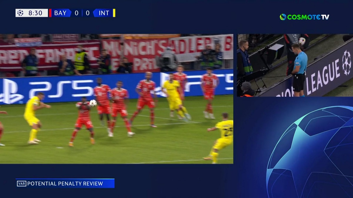 Τις έξαλλες διαμαρτυρίες των παικτών της Ίντερ προκάλεσε μία απόφαση του διαιτητή, Ιβάν Κρούζλιακ, στο παιχνίδι των «νερατζούρι» με την Μπάγερν στο Μόναχο.