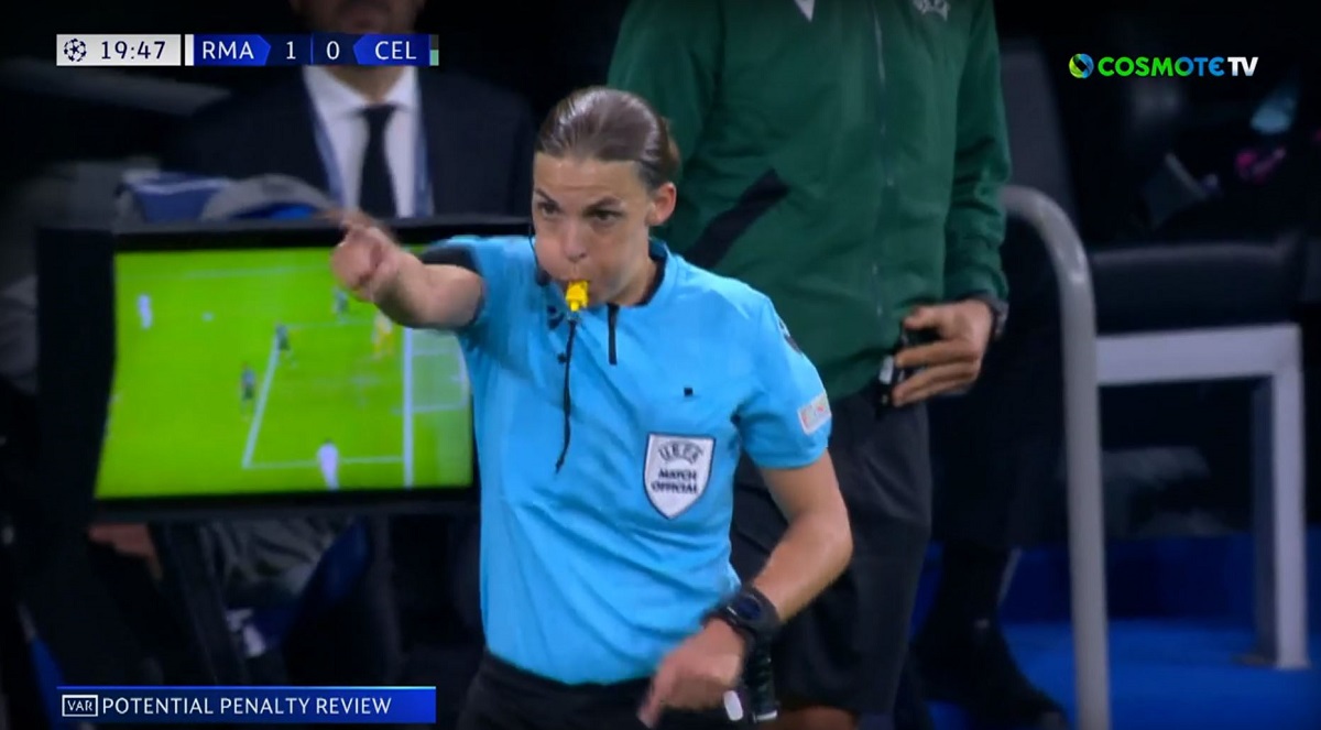 Η Στεφανί Φραπάρ διηύθυνε για πρώτη φορά αναμέτρηση της Ρεάλ στο Champions League και υπέδειξε τρία πέναλτι στο πρώτο ημίχρονο του αγώνα με τη Σέλτικ.