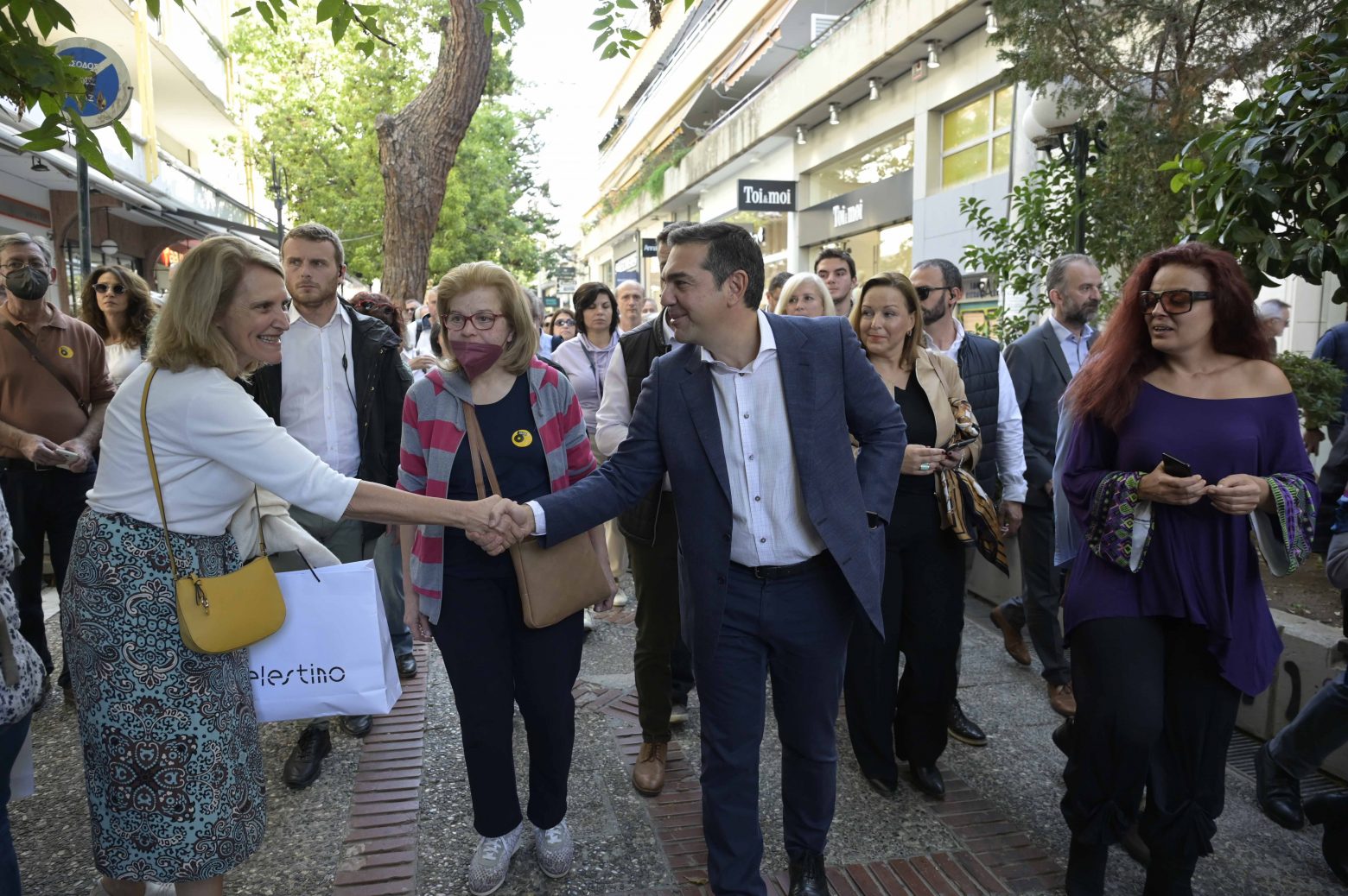 Στη συνέχεια ο κ. Τσίπρας πραγματοποίησε περιοδεία στην αγορά του Χαλανδρίου, όπου συνομίλησε με καταναλωτές και καταστηματάρχες για την εκρηκτική κατάσταση που διαμορφώνεται στην αγορά με τις υπέρογκες αυξήσεις και τη μείωση εισοδημάτων και τζίρου.