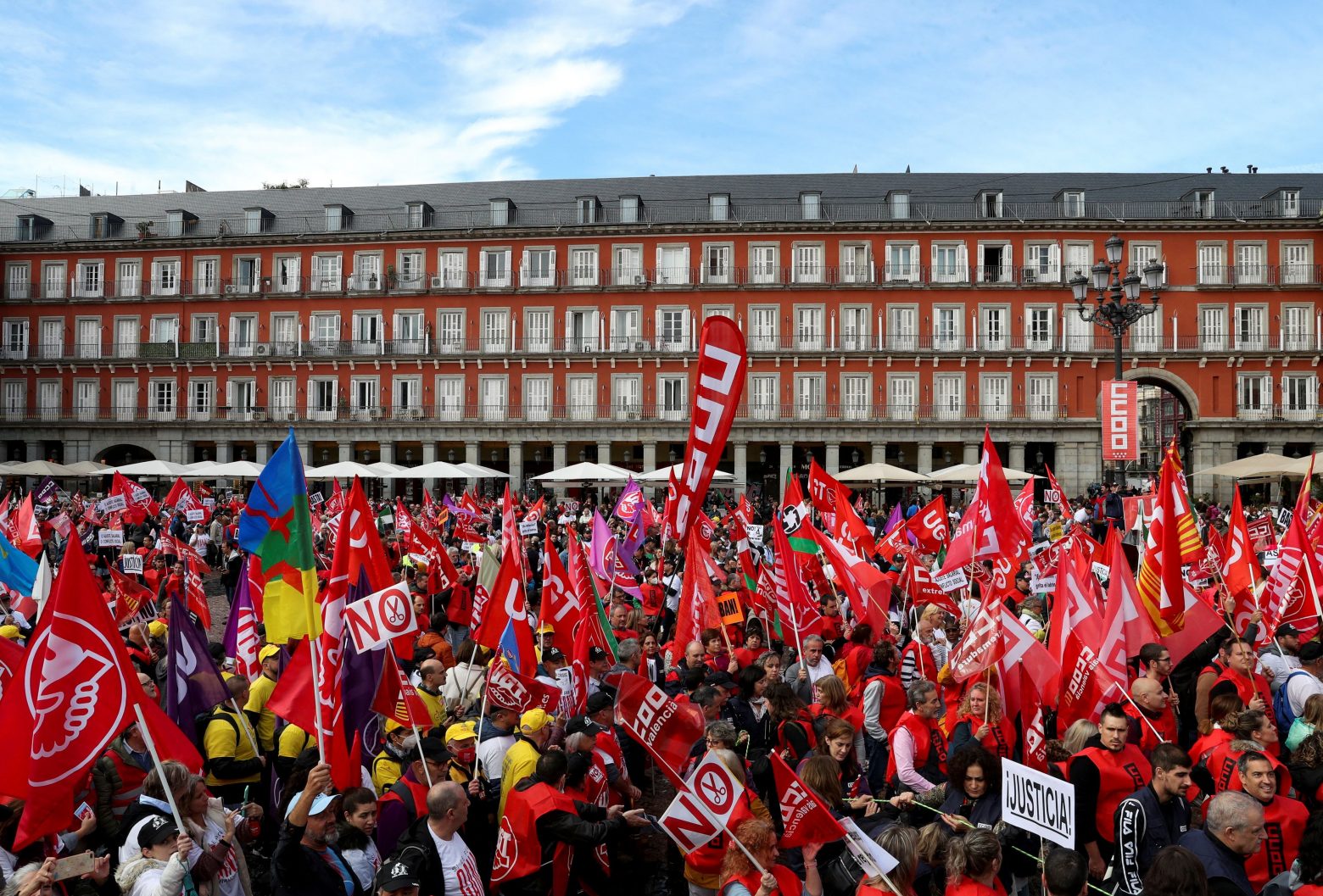 Χιλιάδες άνθρωποι διαδήλωσαν σήμερα στη Μαδρίτη, ανταποκρινόμενοι στο κάλεσμα των δύο μεγαλύτερων εργατικών συνδικάτων της Ισπανίας, ζητώντας αυξήσεις στους μισθούς και απειλώντας ότι θα συνεχίσουν τις κινητοποιήσεις εάν δεν υπάρξει μια συμφωνία με τις εργοδοτικές οργανώσεις στις διαπραγματεύσεις που είναι σε εξέλιξη.