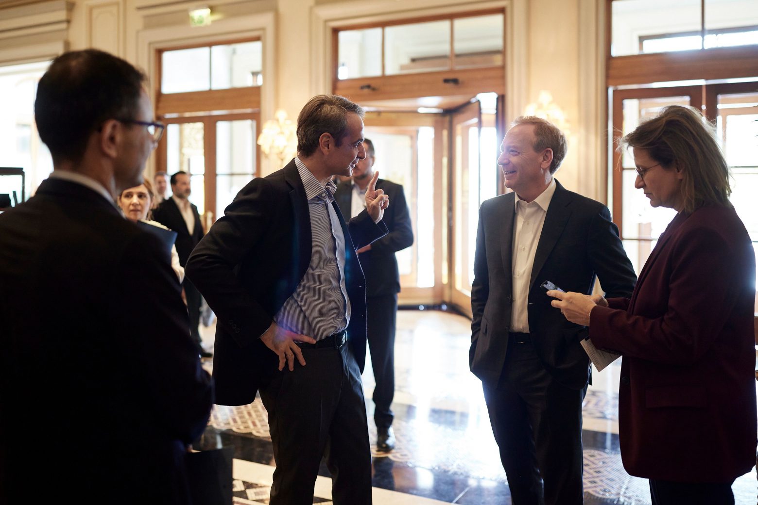 Ο Πρωθυπουργός Κυριάκος Μητσοτάκης συναντήθηκε το πρωί με τον Πρόεδρο της Microsoft, Brad Smith, στο περιθώριο των εργασιών του forum «The Trilateral Commission».