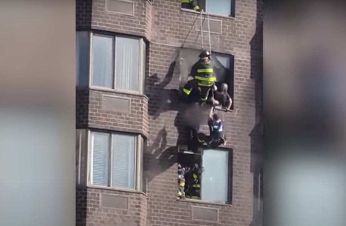 Η γυναίκα που σώθηκε κρεμόταν από παράθυρο, όπως μπορείτε να δείτε στο παρακάτω βίντεο.