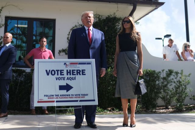 Ψηφίζοντας χθες στο Παλμ Μπιτς (με τη σύζυγό του Μελάνια, στη φωτογραφία, επάνω, από Ricardo Arduengo/Reuters), ο κ. Τραμπ είπε πως αναμένει «σπουδαία βραδιά, κάτι που θα είναι πολύ καλό για τη χώρα» και την επόμενη Τρίτη «αδημονώ να σας δω» στη Φλόριντα για την αναγγελία του που προεξόφλησε πως θα «παθιάσει» πολλούς.