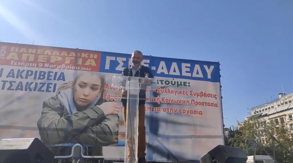 Χειροκροτήθηκε, μόνο από την πλατεία και λίγο – ήμουν παρών- γιατί ζήτησε, ακόμη εν μέσω πανδημίας, ΠΑΝΥΓΙΕΙΝΟΜΙΚΗ ΑΠΕΡΓΙΑ ΔΙΑΡΚΕΙΑΣ ώστε να δικαιωθούν οι εργαζόμενοι στον τομέα της υγείας που εξακολουθούν να είναι ανεμβολίαστοι και έχουν τεθεί σε αναστολή. Και να μην ξεπουληθεί η δημόσια υγεία στα τρωκτικά,κλπ.