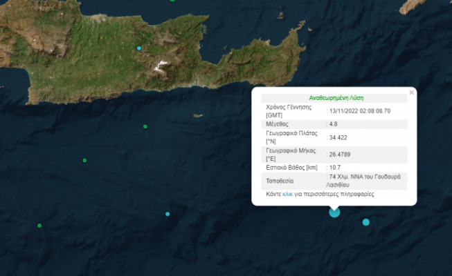 Λίγα λεπτά νωρίτερα είχε σημειωθεί σεισμός 3,3 βαθμών της κλίμακας Ρίχτερ βόρεια του Ηρακλείου.