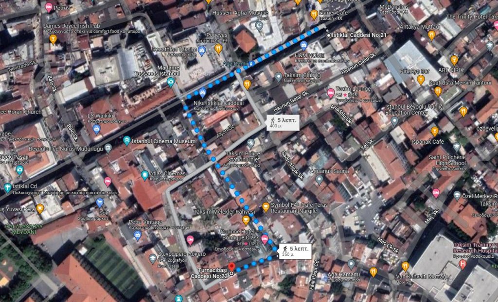Στους χάρτες παρακάτω φαίνεται η απόσταση από το σημείο της έκρηξης έως τα δύο κτίρια του ελληνικού προξενείου