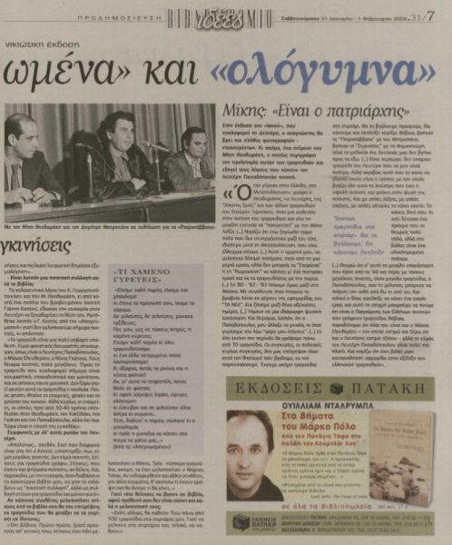 Στην εν λόγω έκδοση περιλαμβάνονταν δύο πολύ ενδιαφέροντα κείμενα για τον Παπαδόπουλο και το σπουδαίο έργο του, γραμμένα από τον Κώστα Γεωργουσόπουλο και τον Μίκη Θεοδωράκη.