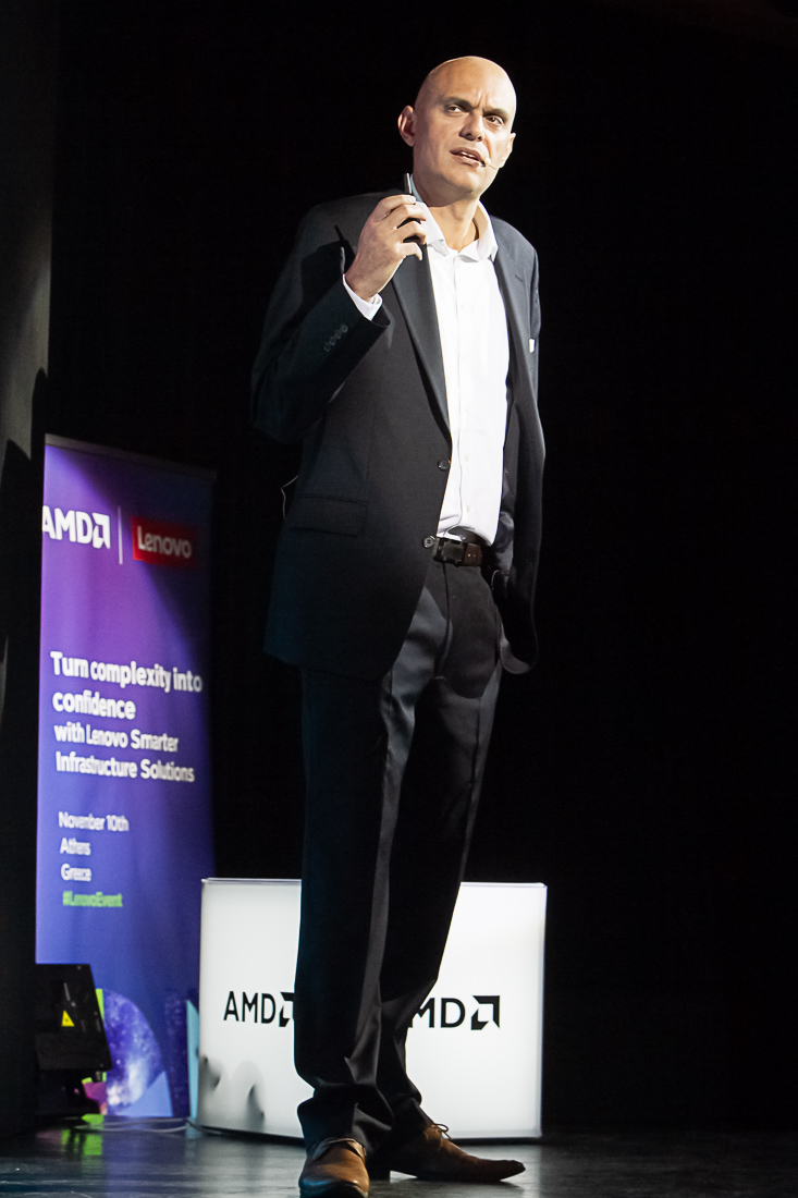 Τις ομιλίες της εκδήλωσης έκλεισε ο LucaCatalano, AMDCommercialBusinessDevelopmentExecutive που μίλησε για το πως η AMD EPYC & η Lenovo βελτιώνουν την απόδοση, προσφέροντας παράλληλα τη βέλτιστη ενεργειακή απόδοση.