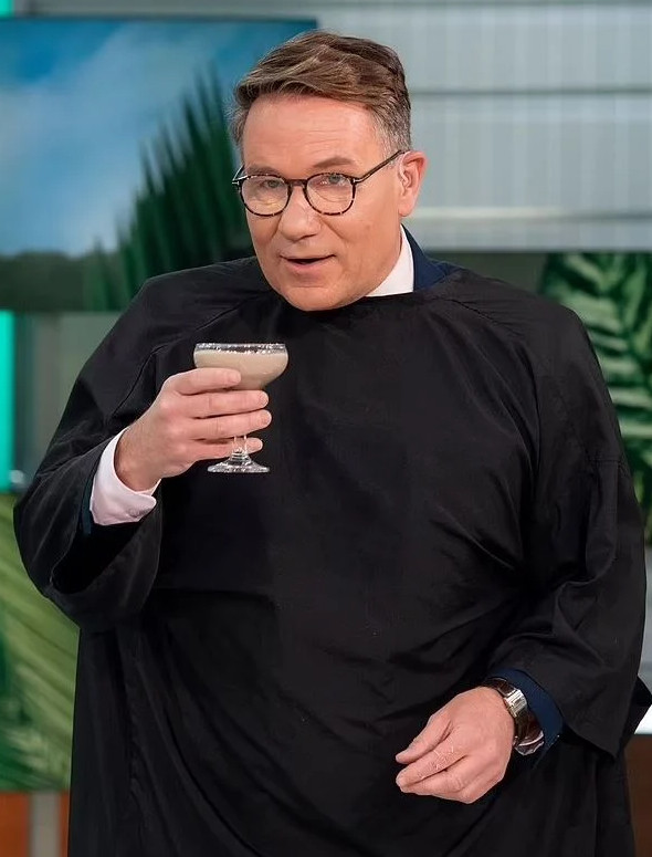 Ο παρουσιαστής σηκώθηκε να πιεί το ποτήρι με το αηδιαστικό περιεχόμενο και ενώ το ήπιε με ταχύτητα, φαίνεται να μην άντεξε και προσπαθούσε να συγκρατήσει τον εμετό, αναζητώντας παράλληλα ένα τρόπο να ξεράσει με τη λιγότερη δυνατή έκθεση στο τηλεοπτικό κοινό.