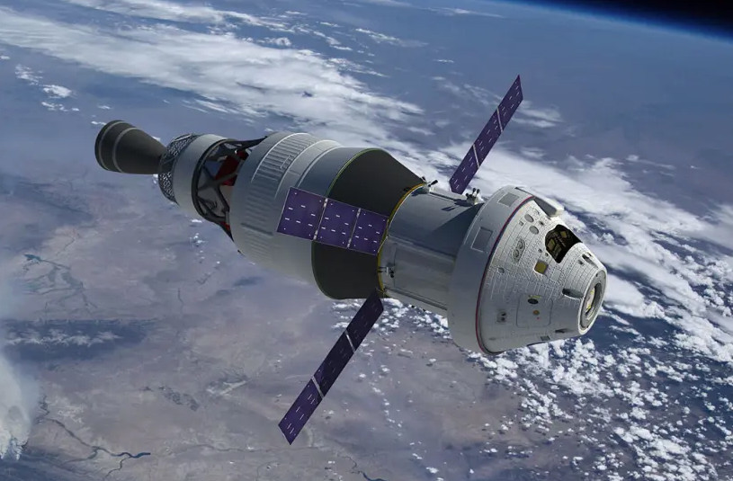 Το Orion, η κωνική κάψουλα στα δεξιά, προωθείται από σύστημα που προσέφερε η ευρωπαϊκή διαστημική υπηρεσία ESA.