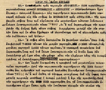 Το ελληνικό υποβρύχιο εξαπέλυσε επίθεση εναντίον της εχθρικής νηοπομπής άνευ επιβεβαιωθέντος αποτελέσματος.
