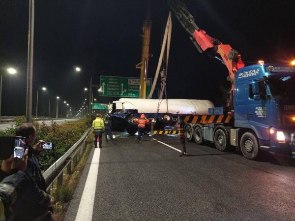 Στις 6 σήμερα το πρωί ολοκληρώθηκε η επιχείρηση απομάκρυνσης του εύφλεκτου υλικού από το βυτιοφόρο που είχε ανατραπεί χθες στον κόμβο της Γυρτώνης, έξω από τη Λάρισα.