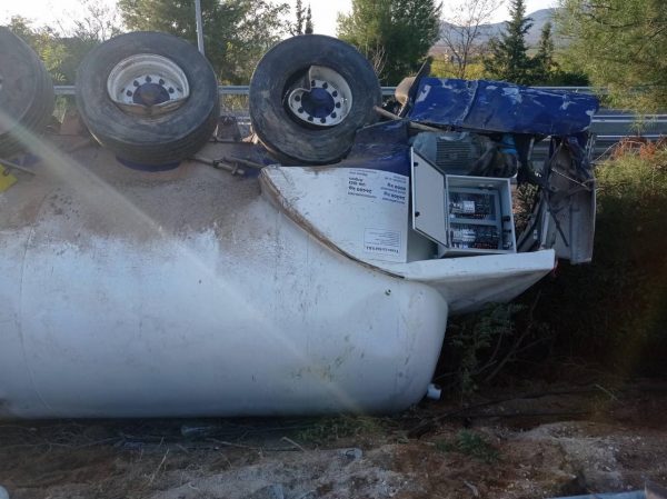 Το φορτίο που μετέφερε το βυτιοφόρο – υγροποιημένο αέριο Αργκόν – είχε εκτονωθεί με απελευθέρωσή του στην ατμόσφαιρα και γι’ αυτό στο σημείο βρέθηκε κλιμάκιο της ιδιοκτήτριας εταιρείας από την Αθήνα.