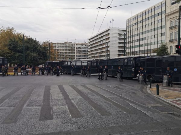 Κλείνει σταδιακά το κέντρο της Αθήνας, ενόψει της καθιερωμένης πορείας προς την αμερικανική πρεσβεία, ανήμερα της 49ης επετείου της εξέγερσης του Πολυτεχνείου.