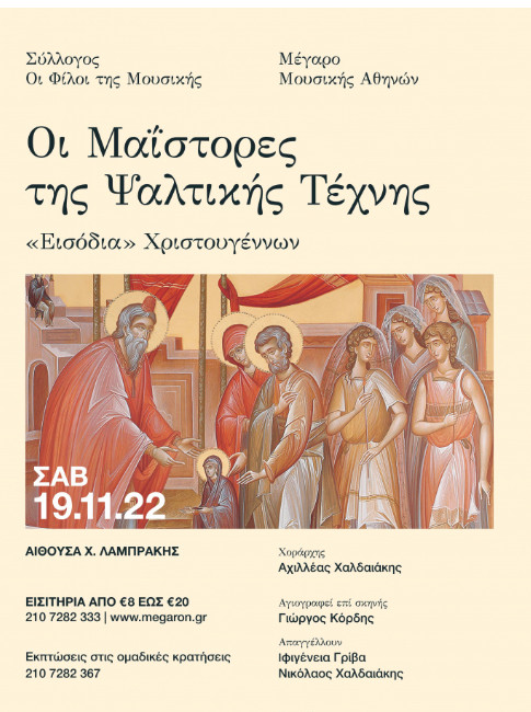 Μια πρωτότυπη και ιδιαίτερη μουσική εκδήλωση θα πραγματοποιηθεί στις 19 Νοεμβρίου στο Μέγαρο Μουσικής Αθηνών με σκοπό να μας μυήσει εορταστικά στα Εισόδια της Θεοτόκου αλλά και να μας εντάξει στο κλίμα των Χριστουγέννων που πλησιάζει.
