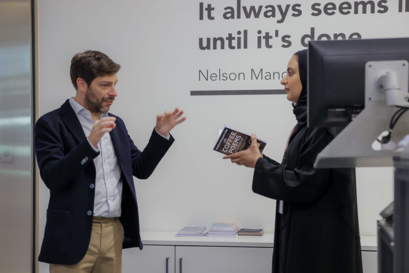 Ο Υφυπουργός, ξεναγήθηκε επίσης στο House of Wisdom, το υπερσύγχρονο κέντρο για το βιβλίο που σχεδίασαν οι Foster + Partners, από τη Διευθύντριά του, Marwa Alaqroubi, με την οποία συζήτησαν τις προοπτικές συνεργασίας του φορέα με ελληνικές βιβλιοθήκες.