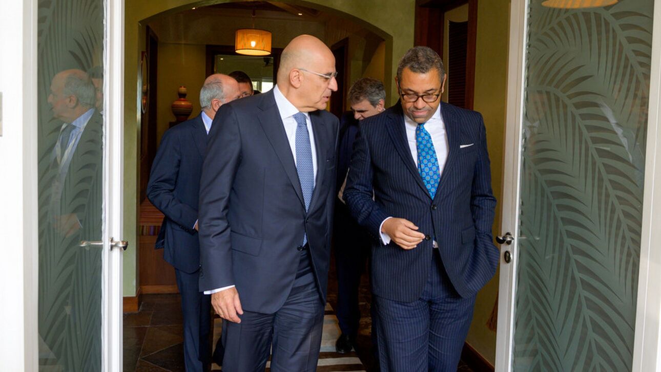 Ο υπουργός Εξωτερικών Νίκος Δένδιας από το Μπαχρέιν όπου παρευρίσκεται στο πλαίσιο του ετήσιου φόρουμ «Manama Dialogue» συναντήθηκε την Κυριακή με το Βρετανό ομόλογό του, Τζέιμς Κλέβερλι.