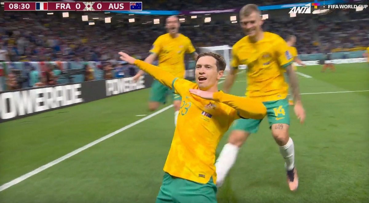 Από γύρισμα του Λέκι ο Γκούντγουιν έκανε το 1-0 για την Αυστραλία στο 9ο λεπτό της αναμέτρησης με τη Γαλλία.