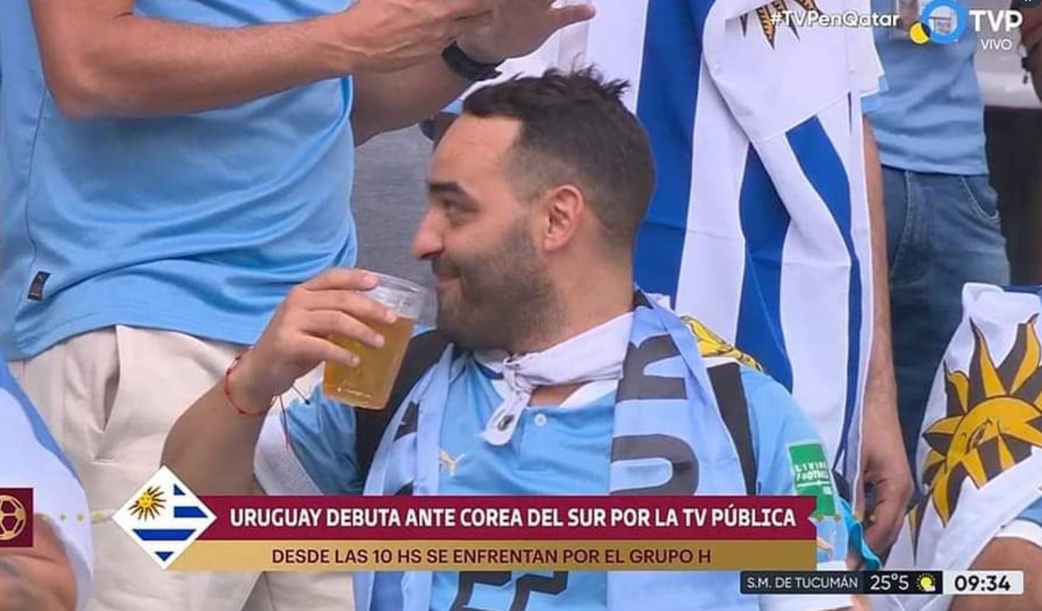 Η κάμερα συνέλαβε οπαδό της εθνικής ομάδας της Ουρουγουάης να κρατά την μπύρα του, χαμογελώντας πιθανότατα σε κάποιον φίλο με τον οποίο βρέθηκαν μαζί στις εξέδρες του σταδίου. Το πιο πιθανό σενάριο φυσικά να πρόκειται για μπύρα χωρίς αλκοόλ.
