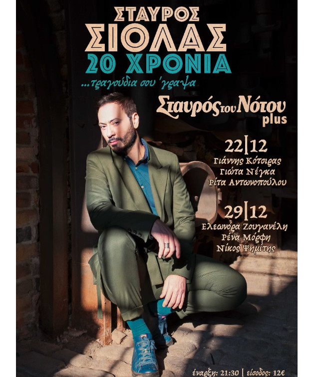 Ο Σταύρος Σιόλας γιορτάζει τα 20 χρόνια από την κυκλοφορία του πρώτου δίσκου του και μας προσκαλεί σε μια παράσταση που θα ακολουθεί την πορεία της δισκογραφίας του.