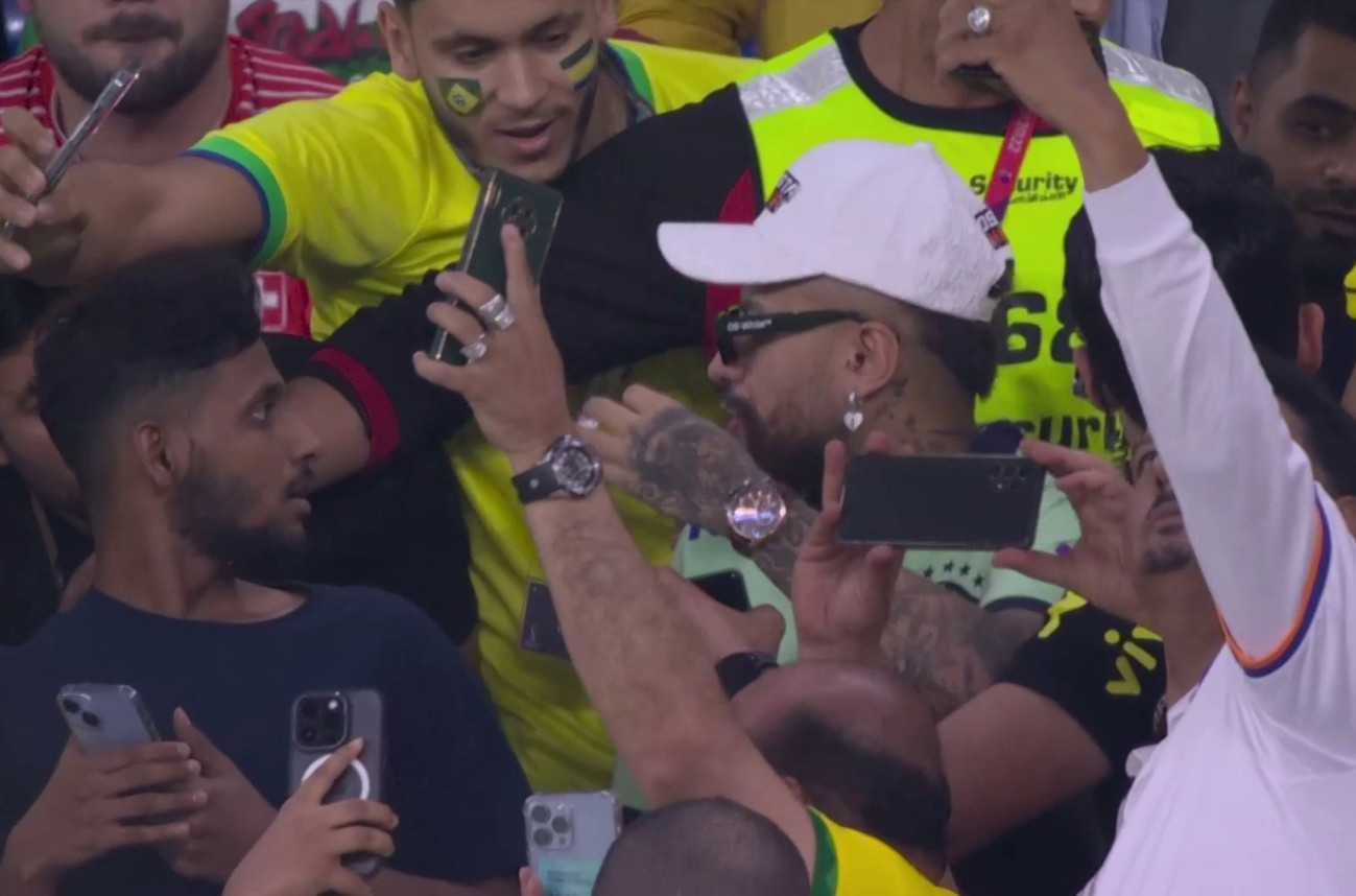 Μπορεί ο Νεϊμάρ να βγήκε νοκ-άουτ και να παρακολουθούσε τον αγώνα της Βραζιλίας από το ξενοδοχείο, οι οπαδοί όμως εντόπισαν τον σωσία του στις εξέδρες, στη διάρκεια του αγώνα με την Ελβετία.