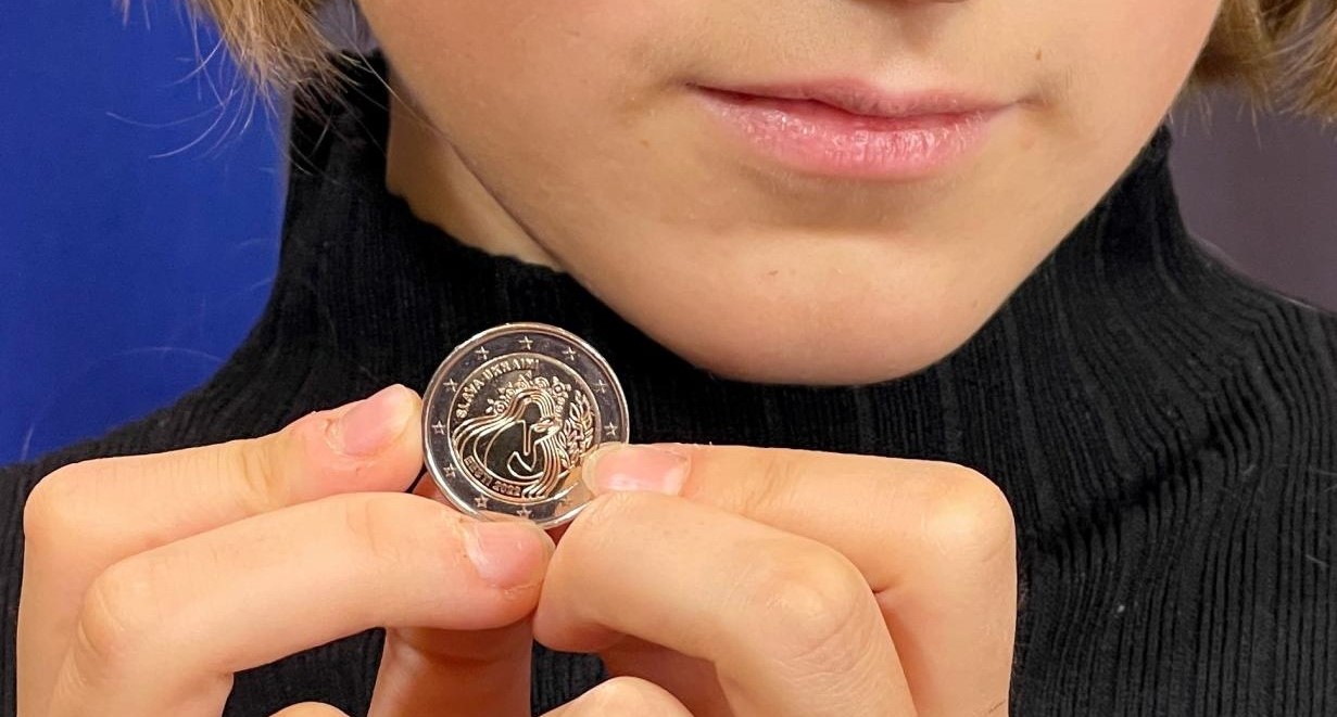 Το κέρμα φιλοτέχνησε η Ντάρια Τίτοβα, μια προσφυγοπούλα από την Ουκρανία που συνεχίζει τις σπουδές της στην Εσθονία
