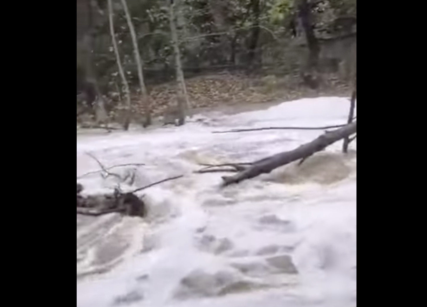 Το ποτάμι στο «Σκεπασμένο» Βελβεντού στην Κοζάνη φούσκωσε, εξαιτίας της νεροποντής.